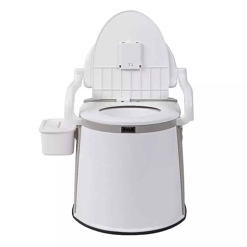 Designed for easy installation, it features a built-in tissue box, non-slip strips, sturdy handrails, and a 5-gallon inner bucket for added convenience.
