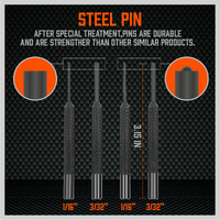 1/8", 9/64", 5/32", 3/16", 7/32", 1/4", 9/32"and 5/16"