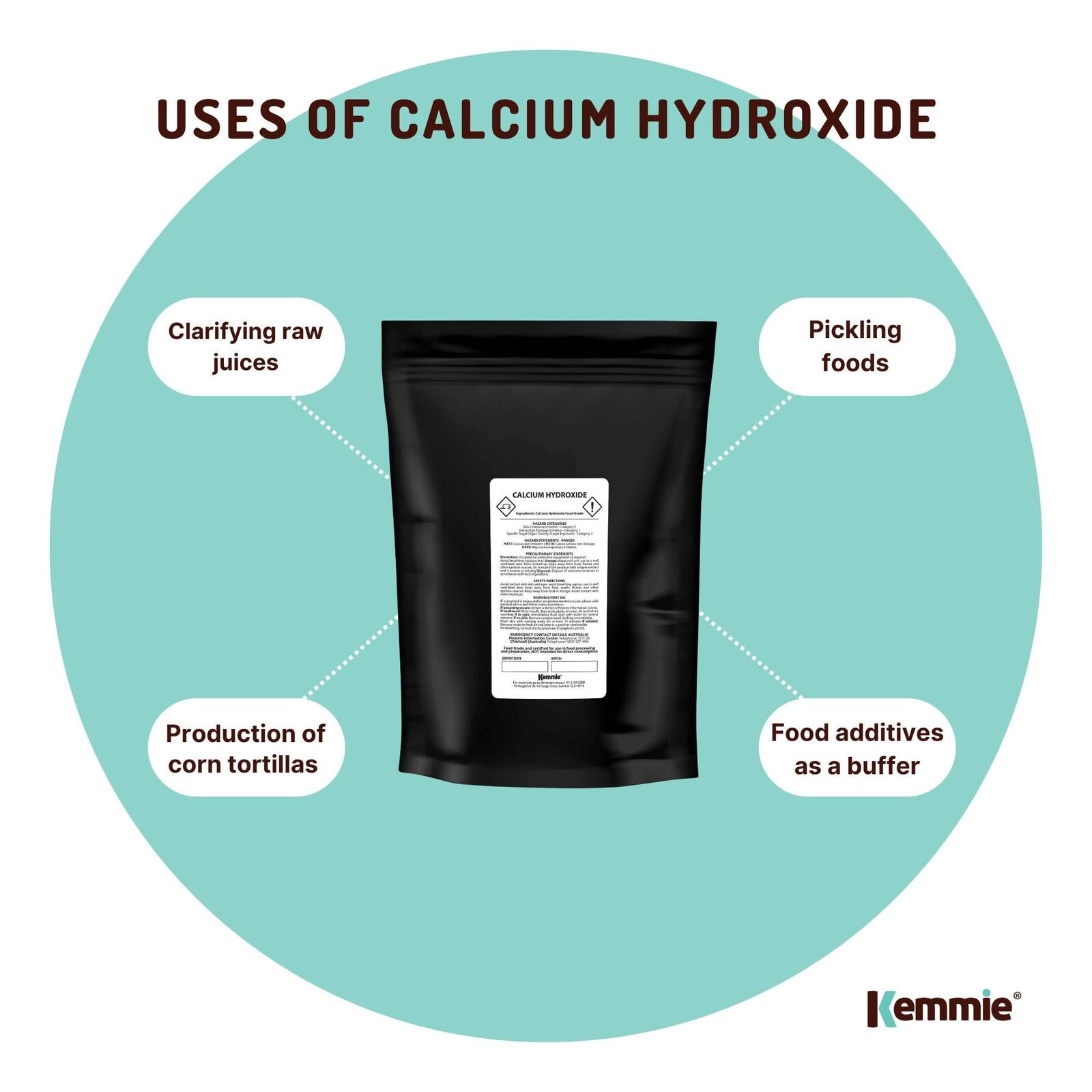 Please Note: Please wear protective gear when handling as calcium hydroxide may cause skin corrosion/irritation, serious eye damage/irritation, respiratory irritation.