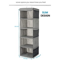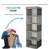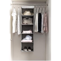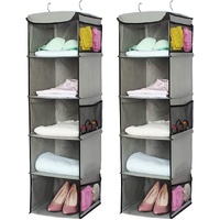 2 Pack 5 Foldable Shelf Hanging Closet Organizer Space Saver with Side Accessories Pockets for Clothes Storage