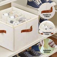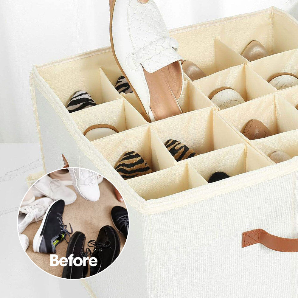 Crafted with a sturdy outer shell and breathable canvas body, this shoe box provides excellent protection against dust, scratches, and deformation. Adjustable dividers keep shoes upright and can be expanded to fit different shoe types. A clear lid allows for instant visibility while two-way zipper ensures easy access.