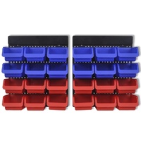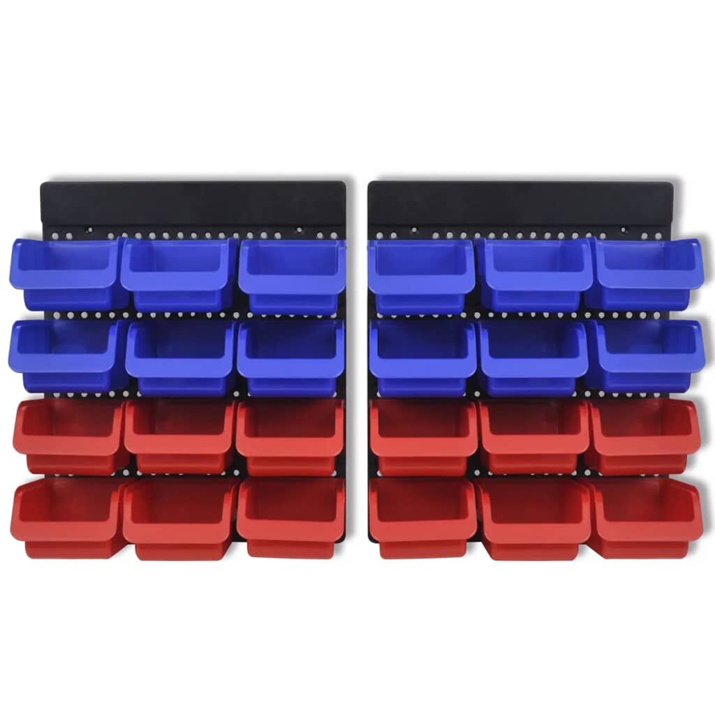 This wall mounted plastic tool organiser set is a must have for any workshop, ideal for storing nuts, bolts and other small parts. Its removable and stackable storage bins are made of high-density polypropylene, which withstands high temperatures and is resistant to most industrial solvents. The durable peg panel boards can be easily mounted to a wall. With this storage bin you will be able to organise your workshop. 1 tool organiser contains 12 small storage bins. Delivery includes 2 pcs.