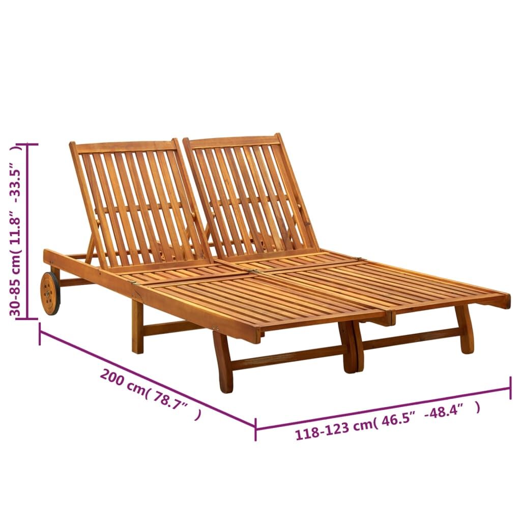 2-Person Garden Sun Lounger with Cushions Solid Acacia Wood