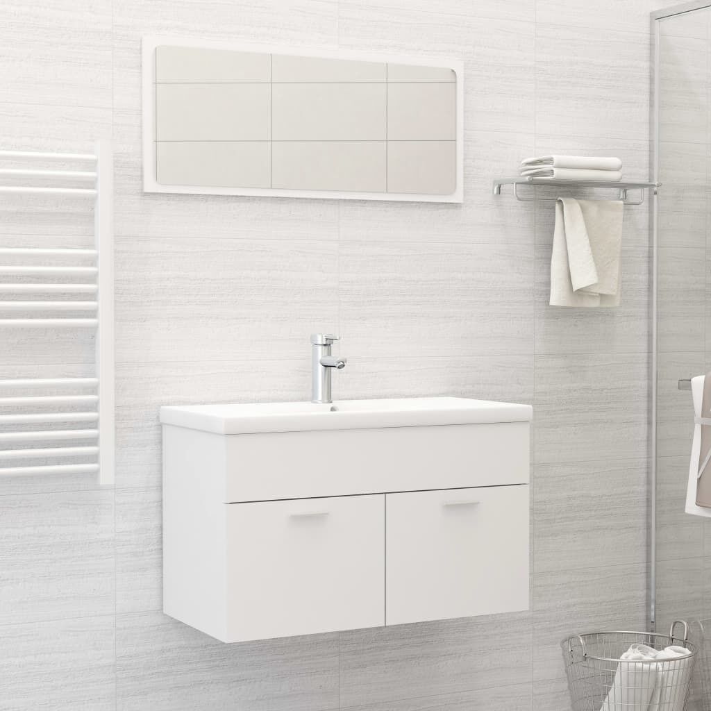 $53.57With this stylish bathroom furniture set, you can create additional storage space for your bathroom with a striking, tidy appearance. The clean lines and sleek design blend into your bathroom perfectly. The furniture set, featuring a mirror and a cabinet, is made of durable and stable board. This chic cabinet features 1 compartment and 2 doors, offering ample storage space to store items in your bathroom. The top of the cabinet is ideal for placing the sink. The mirror also adds an excellent appearance to your home decor. Additionally, this bathroom set is easy to clean with a damp cloth. Please note: The sink is not included in the delivery.