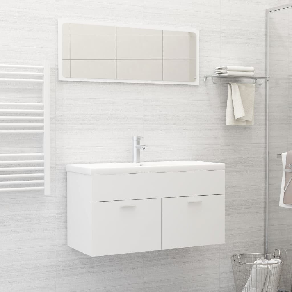 $77.07With this stylish bathroom furniture set, you can create additional storage space for your bathroom with a striking, tidy appearance. The clean lines and sleek design blend into your bathroom perfectly. The furniture set, featuring a mirror and a cabinet, is made of durable and stable board. This chic cabinet features 1 compartment and 2 doors, offering ample storage space to store items in your bathroom. The top of the cabinet is ideal for placing the sink. The mirror also adds an excellent appearance to your home decor. Additionally, this bathroom set is easy to clean with a damp cloth. Please note: The sink is not included in the delivery.