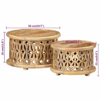 This wooden coffee table set has a distinctive design and will add a touch of retro style to your interior. Solid mango wood: Solid mango wood is a strong, tropical hardwood that makes sturdy furniture. Its beautiful wood grains make every piece of furniture slightly different from the next.Smooth table top: The smooth table top is easy to clean with a damp cloth and is perfect for placing food, drinks and other decorative items.Wide applications: This side table can be used as a couch table, end table or living room table. Good to know:Colours and grains vary per furniture item, making each piece unique. The delivery is random, ensuring the exclusivity and individuality of your product.