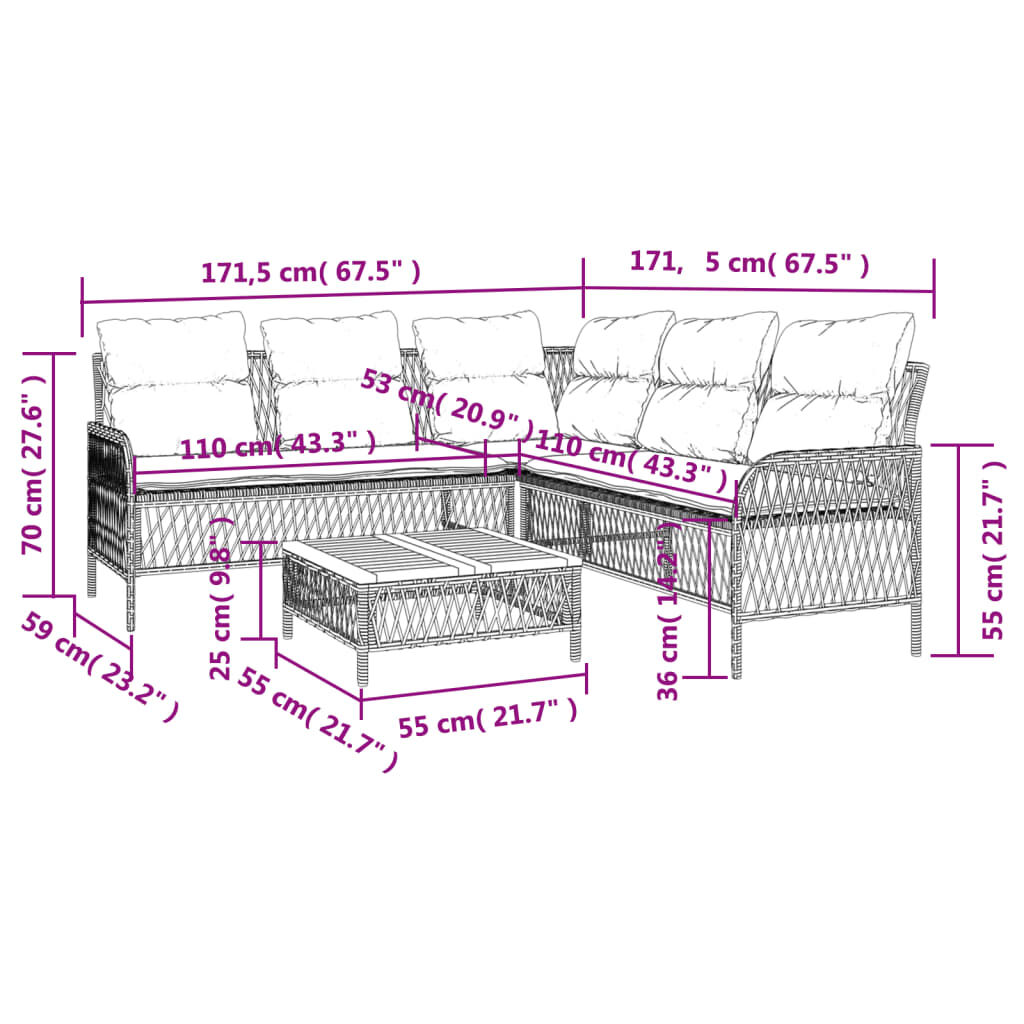 This garden sofa set is the perfect addition to your backyard, terrace, or patio, providing a comfortable and inviting space for chatting with family and friends or simply relaxing and enjoying the outdoors. Durable material: PE rattan, also known as poly rattan, is a strong, low-maintenance synthetic material that looks like natural rattan. It's lightweight, easy to clean, and commonly used for outdoor furniture due to its durability and weather-resistant properties.Robust and stable frame: The powder-coated steel frame ensures that the garden furniture is strong and stable for daily outdoor use.Comfortable seat experience: This outdoor furniture, complete with thickly padded cushions, offers a comfortable seating experience.Removable and washable cover: These seat cushions feature removable covers for easy washing and maintenance.Stable and easy-to-clean tabletop: This garden table has an acacia wood top that is sturdy, durable, and easy to clean with a damp cloth. Good to know:To make sure your outdoor furniture stays beautiful, we recommend protecting it with a waterproof cover.