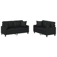 This sofa set is an excellent place for chatting, reading, watching TV or just relaxing. It is meant to be a focal point in your home. Durable faux leather: Premium faux leather is a highly durable material. It is resistant to stain, making it easy to clean with a damp cloth. The smooth surface also gives a luxurious look and the beauty of real leather.Sturdy and stable frame: The plywood and metal frame of the sofa seating ensures sturdiness and stability.Comfortable seat experience: The sofa is highly comfortable with the thickly padded seat, armrests and back pillow.Practical couch pillows: These square throw pillows not only spruce up your decor, but can also add extra comfort when you are seated or lying.