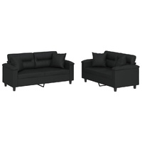 This sofa set is an excellent place for chatting, reading, watching TV or just relaxing. It is meant to be a focal point in your home. Durable faux leather: Faux leather is a highly durable material. It is resistant to stain, making it easy to clean with a damp cloth. The smooth surface also gives a luxurious look and the beauty of real leather.Sturdy and stable frame: The plywood and metal frame of the sofa seating ensures sturdiness and stability.Comfortable seat experience: The sofa is highly comfortable with the thickly padded seat, armrests and back pillow.Practical couch pillows: These square throw pillows not only spruce up your decor but can also add extra comfort when you are seated or lying.