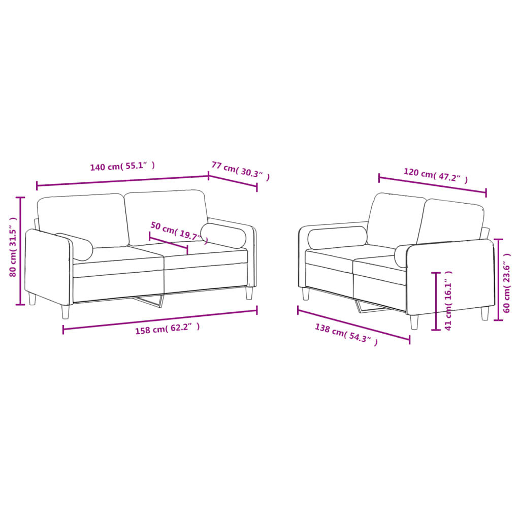 This sofa set is an excellent place for chatting, reading, watching TV or just relaxing. It is meant to be a focal point in your home. Soft velvet: Velvet is a soft and comfortable fabric that feels nice against the skin.Sturdy and stable frame: The plywood and metal frame of the sofa seating ensures sturdiness and stability.Comfortable seat experience: The sofa is highly comfortable with the thickly padded seat, armrests, and back pillow.Practical roll pillows: These cylinder pillows not only spruce up your decor but can also add extra comfort when you are seated or lying.