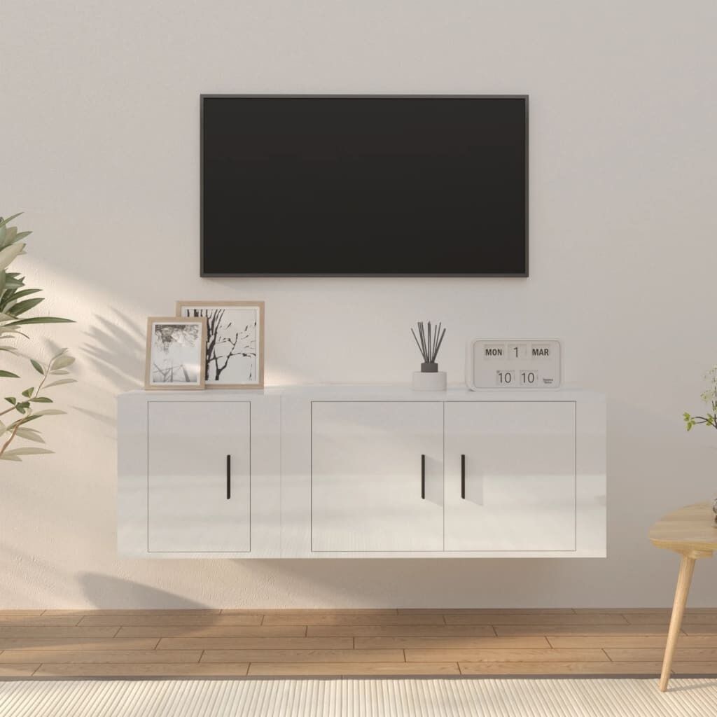 $106.21This classic TV cabinet set is designed to be a focal point of your room, featuring a trendy yet practical design. Sturdy material: The engineered wood is of exceptional quality with smooth surface and also features strength, stability and resistance to moisture. Made of engineered wood, these TV stands are easy to clean.Ample storage space: These TV units provide ample storage space to keep all your magazines, DVDs and any other items well organised.Wall-mounted design: These media cabinets don't take any floor space. You can hang them on the wall easily.Practical doors: Keep your essentials free from dust by hiding them behind the doors of the media units. Good to know:To make assembly as easy as possible, each product is delivered with a manual.Screws and plugs for inside the wall are not included. We advise to find and use screws and plugs suitable specifically for your walls. If you're not sure, you can consult with a professional. Please read and follow each step of the instructions.