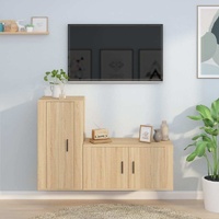 $130.65This classic TV cabinet set is designed to be a focal point of your room, featuring a trendy yet practical design. Sturdy material: The engineered wood is of exceptional quality with smooth surface and also features strength, stability and resistance to moisture.Ample storage space: The TV stand set provides ample storage space to keep all your magazines, DVDs and any other items well organised.Wall-mounted design: The TV unit doesn't take any floor space. You can hang it on the wall easily. Good to know:To make assembly as easy as possible, each product is delivered with a manual.Screws and plugs for inside the wall are not included. We advise to find and use screws and plugs suitable specifically for your walls. If you're not sure, you can consult with a professional. Please read and follow each step of the instructions.