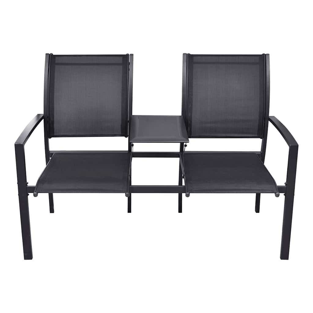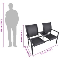 This steel chair, designed with two seats, is a perfect choice for you to enjoy a relaxing moment with a loved one. Thanks to the strong textilene material, the double chair provides you with a safe and comfortable seating. A glass-top shelf is equipped in the middle to keep your drinks or books within reach. Together with the beautiful contemporary design, our double chair presents you a great combination of functionality and style. Featuring a sturdy powder-coated steel frame, the chair is strong, firm and durable, ensuring a long service life. Buy yourself this stylish double chair, and make your garden an enjoyable place!