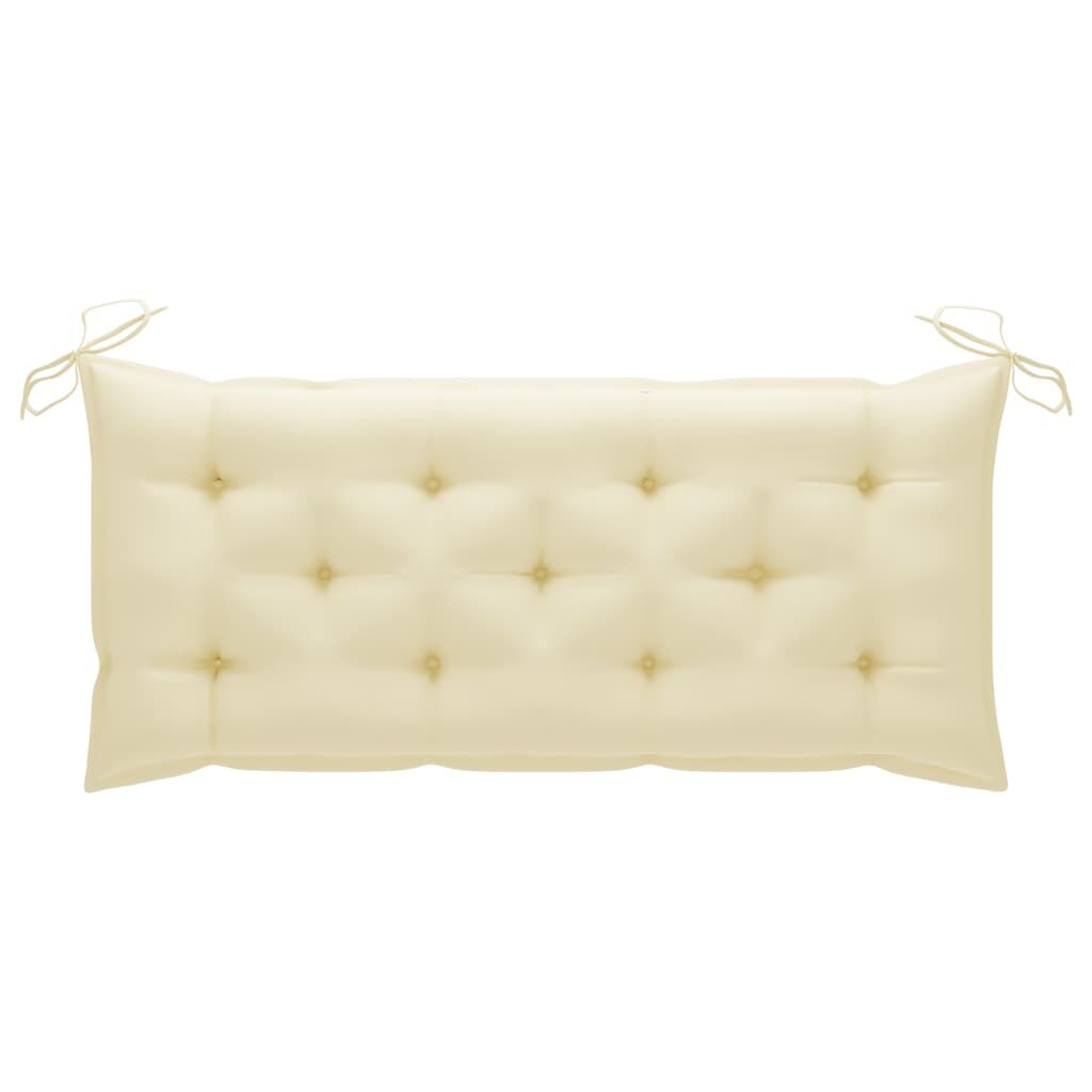 This solid eucalyptus wood bench, with cushion, adds a natural touch to your outdoor living space! It is designed to be the focal point of your garden, terrace or patio. This garden bench is made of solid eucalyptus wood, making it sturdy and stable. The wooden bench's ergonomically-designed shape gives the optimal seating comfort. The oil-finished surface is easy to clean with a damp cloth. Additionally, the cushion adds extra comfort. Each cushion features two sets of ropes to fix it on your outdoor bench tightly.