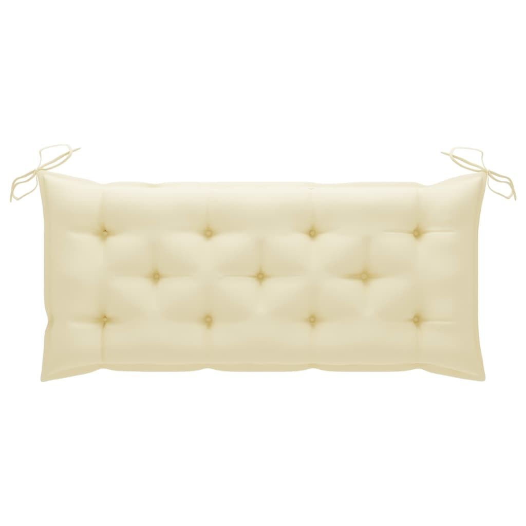 This solid eucalyptus wood bench, with cushion, adds a natural touch to your outdoor living space! It is designed to be the focal point of your garden, terrace or patio. This garden bench is made of solid eucalyptus wood, making it sturdy and stable. The wooden bench's ergonomically-designed shape gives the optimal seating comfort. The oil-finished surface is easy to clean with a damp cloth. Additionally, the cushion adds extra comfort. Each cushion features two sets of ropes to fix it on your outdoor bench tightly.