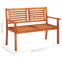 This solid eucalyptus wood bench, with cushion, adds a natural touch to your outdoor living space! It is designed to be the focal point of your garden, terrace or patio. This garden bench is made of solid eucalyptus wood, making it sturdy and stable. The wooden bench's ergonomically-designed shape gives the optimal seating comfort. The oil-finished surface is easy to clean with a damp cloth. Additionally, the cushion adds extra comfort. Each cushion features two sets of ropes to fix it on your outdoor bench tightly.