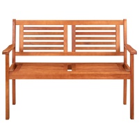 This solid eucalyptus wood bench, with cushion, adds a natural touch to your outdoor living space! It is designed to be the focal point of your garden, terrace or patio. This garden bench is made of solid eucalyptus wood, making it sturdy and stable. The wooden bench's ergonomically-designed shape gives the optimal seating comfort. The oil-finished surface is easy to clean with a damp cloth. Additionally, the cushion adds extra comfort. Each cushion features two sets of ropes to fix it on your outdoor bench tightly.