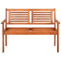 This solid eucalyptus wood bench, with cushion, adds a natural touch to your outdoor living space! It is designed to be the focal point of your garden, terrace or patio. This garden bench is made of solid eucalyptus wood, making it sturdy and stable. The wooden bench's ergonomically-designed shape gives the optimal seating comfort. The oil-finished surface is easy to clean with a damp cloth. Additionally, the cushion adds extra comfort. Each cushion features two sets of ropes to fix it on your outdoor bench tightly.