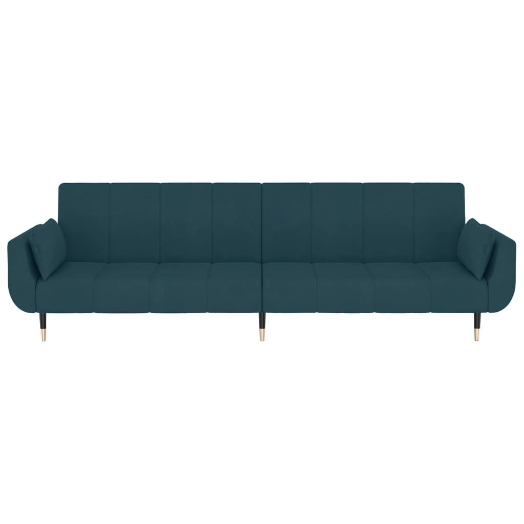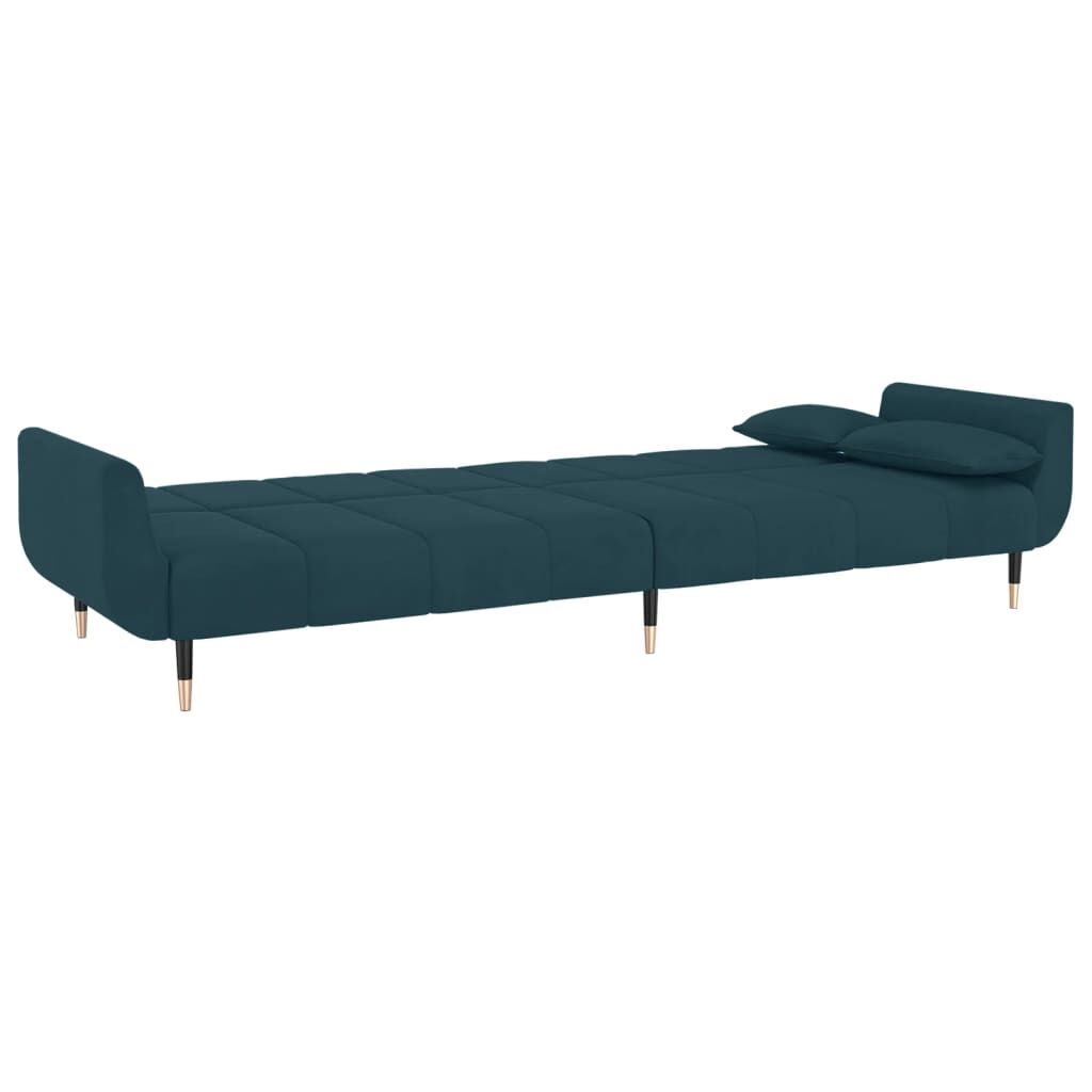 This sofa bed features a convertible design. So, you can choose from a sitting, lounging or sleeping position as per your preference and comfort. It is the ideal piece of furniture if you need extra sleeping space for your friends and guests overnight. Soft and comfortable material: Velvet fabric features delicate texture and is soft and comfortable to touch.Adjustable backrest: You can push the two separate backrests partially or fully down, to create an ideal spot for a nap or a twin bed.Sturdy and stable: The wooden frame and metal legs of sleeper sofa ensure sturdiness and stability.Two pillows for comfort : Two pillows are included for your comfort.