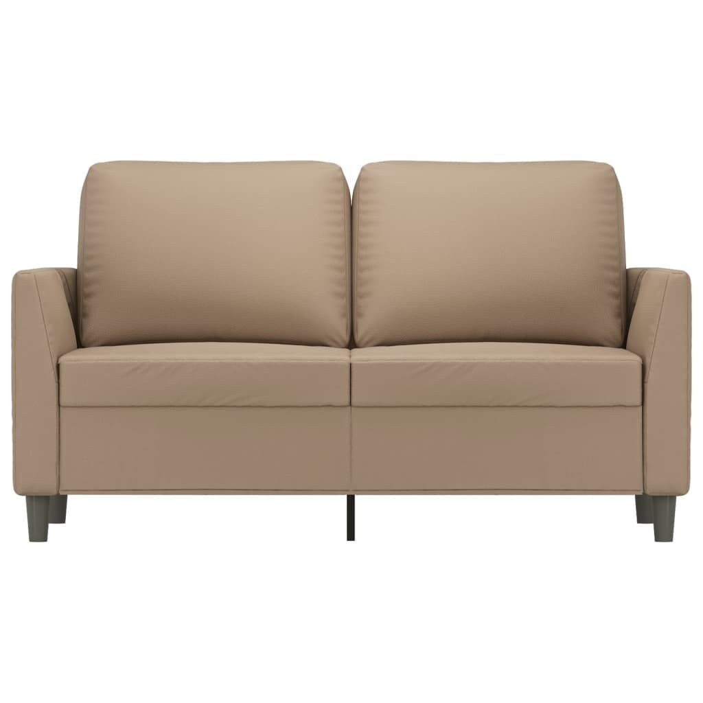 This 2-seater sofa is an excellent place for chatting, reading, watching TV or just relaxing. It is meant to be a focal point in your home. Durable faux leather: Premium faux leather is a highly durable material. It is resistant to stain, making it easy to clean with a damp cloth. The smooth surface also gives a luxurious look and the beauty of real leather.Sturdy and stable frame: The metal frame of the upholstered sofa ensures sturdiness and stability.Comfortable seat experience: The sofa is highly comfortable with the thickly padded seats, armrests and back pillows.Eye-catching design: Featuring a simple yet modern design, this couch is meant to be an eye-catcher in your room.