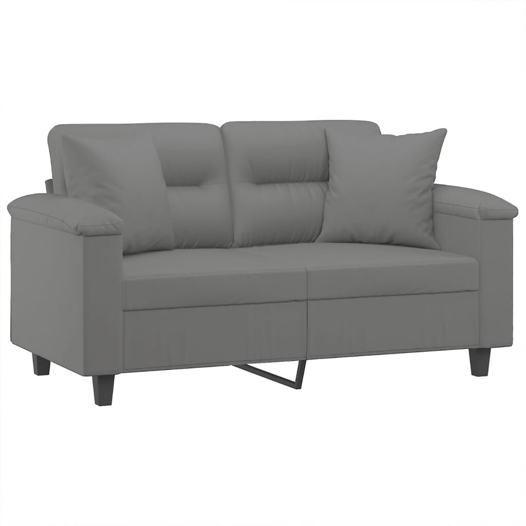 This 2-seater sofa, standing out with its modern design and throw pillows, will be an excellent place for chatting, watching TV or just relaxing. Durable microfibre: Microfibre is a synthetic fabric consisting of ultra-fine fibres, which are particularly impervious to stains. Microfibre fabric is a great choice for furniture upholstery due to its durability and easy cleaning.Sturdy and stable frame: The metal frame of the lounge sofa ensures sturdiness and stability.Throw pillows with inserts: These throw pillows come with PP cotton inserts, so you don't bother to buy fillings.Comfortable seat experience: The sofa is highly comfortable with the thickly padded seats, armrests and back pillows. Besides, the decorative pillows can add extra comfort when you are seated or lying.