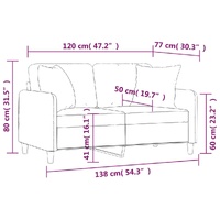 This 2-seater sofa, standing out with its modern design and throw pillows, will be an excellent place for chatting, watching TV or just relaxing. Durable fabric: The fabric features a simple and clean look while remaining breathable and long-lasting.Sturdy and stable frame: The metal frame of the lounge sofa ensures sturdiness and stability.Throw pillows with inserts: These throw pillows come with PP cotton inserts, so you don't bother to buy fillings.Comfortable seat experience: The sofa is highly comfortable with the thickly padded seats, armrests and back pillows. Besides, the decorative pillows can add extra comfort when you are seated or lying.