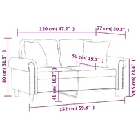 This 2-seater sofa, standing out with its modern design and throw pillows, will be an excellent place for chatting, watching TV or just relaxing. Soft velvet: Velvet is a soft, luxurious fabric that is recognised by its dense pile of evenly cut fibres that have a smooth nap. Velvet fabric features a distinctively soft feel, making it pleasant to touch.Sturdy and stable frame: The metal frame of the lounge sofa ensures sturdiness and stability.Throw pillows with inserts: These sofa pillows come with PP cotton inserts, so you don't bother to buy fillings.Comfortable seat experience: The sofa is highly comfortable with the thickly padded seats, armrests and back pillows. Besides, the decorative pillows can add extra comfort when you are seated or lying.