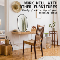 The oval mirror is stylish and neat in design comes with a 2.8cm thickness slender aluminium frame that is sure to capture the attention of all. Plus, its curved lines all rounds will become a central focal point in any room which makes spaces feel more inviting and relaxing.
