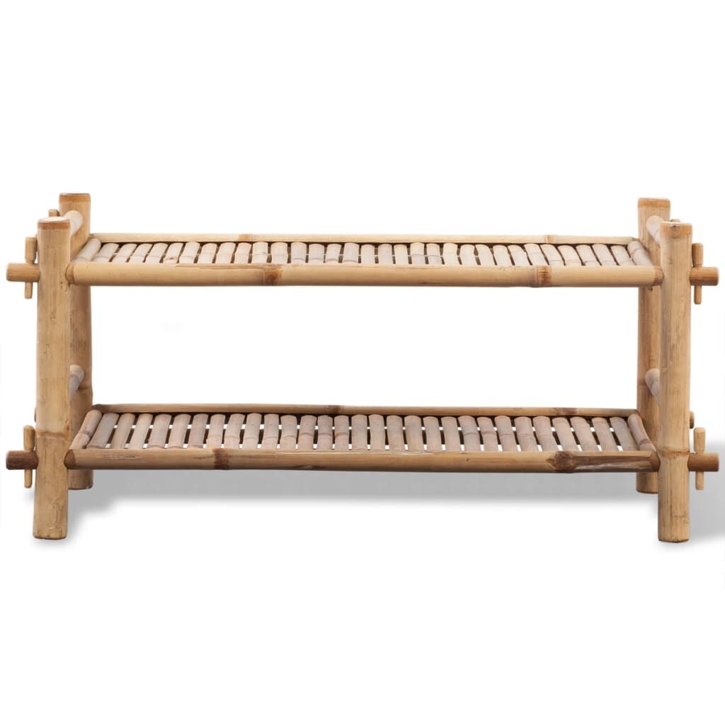 This 2-tier bamboo shoe rack is perfect to keep your footwear organised and arranged for easy retrieval. This shoe rack is lightweight and can hold up to 4 pairs of shoes. The authentic bamboo colour will add some tropical flair to your decor. The shoe rack is made of high-quality bamboo, which is characterised by excellent weather-resistance and durability. It is easy to wipe clean with a damp cloth.