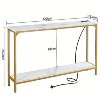 2 Tier Console Table with Power Outlets and USB Ports, Wood Entryway Table with Charging Station & Storage Shelf, Narrow 2-Tier Sofa Table for Living