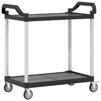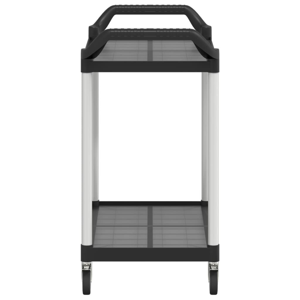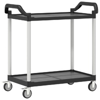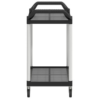 Create a distinctive touch and add more storage space with this 2-tier trolley. Durable material: Polypropylene (PP) is a popular plastic that is also one of the most used materials in outdoor furniture. It's lightweight, tough, and resistant to impact. Also, the aluminium tubes ensure the stability and sturdiness of the trolley.Ample storage space: The kitchen trolley, featuring 2 shelves, provides sufficient space to place snacks, drinks, vases, fruit bowls, or other decorative items.Flexible movement: The drink trolley comes with 4 rubber wheels and 2 handles, making it easy and convenient to roll it wherever you need it. Additionally, 2 wheels are lockable for added control and safety.Wide applications: This bar trolley can be used in different settings, such as the kitchen, dining room, living room, or garage, and can be used as a drink cart, kitchen cart, or tool trolley. Good to know:The rubber mallet is required during the installation (not included in the delivery).