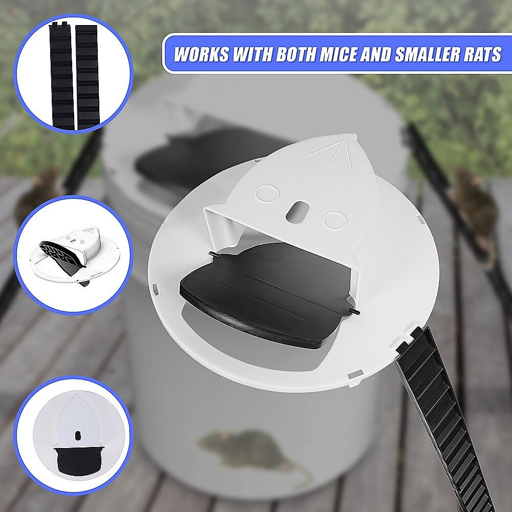 $38.53Mice are adorable in cartoons, but when it comes to your home or business, they're trouble in a tiny package. With these flip-and-slide mousetraps by Randy Travis Machinery, you can catch the little creatures without the cruelty of glue and snap traps. Just put some irresistible treats on the lid, toss some birdseed inside of a five-gallon (18.9-litre) bucket, snap the lid on top of the bucket, and install the trap along a path on which the mice travel. Then, all you have to do is relax while the unsuspecting mice drop into the bucket. In the morning, simply take the bucket outside and release the mice into the wild.