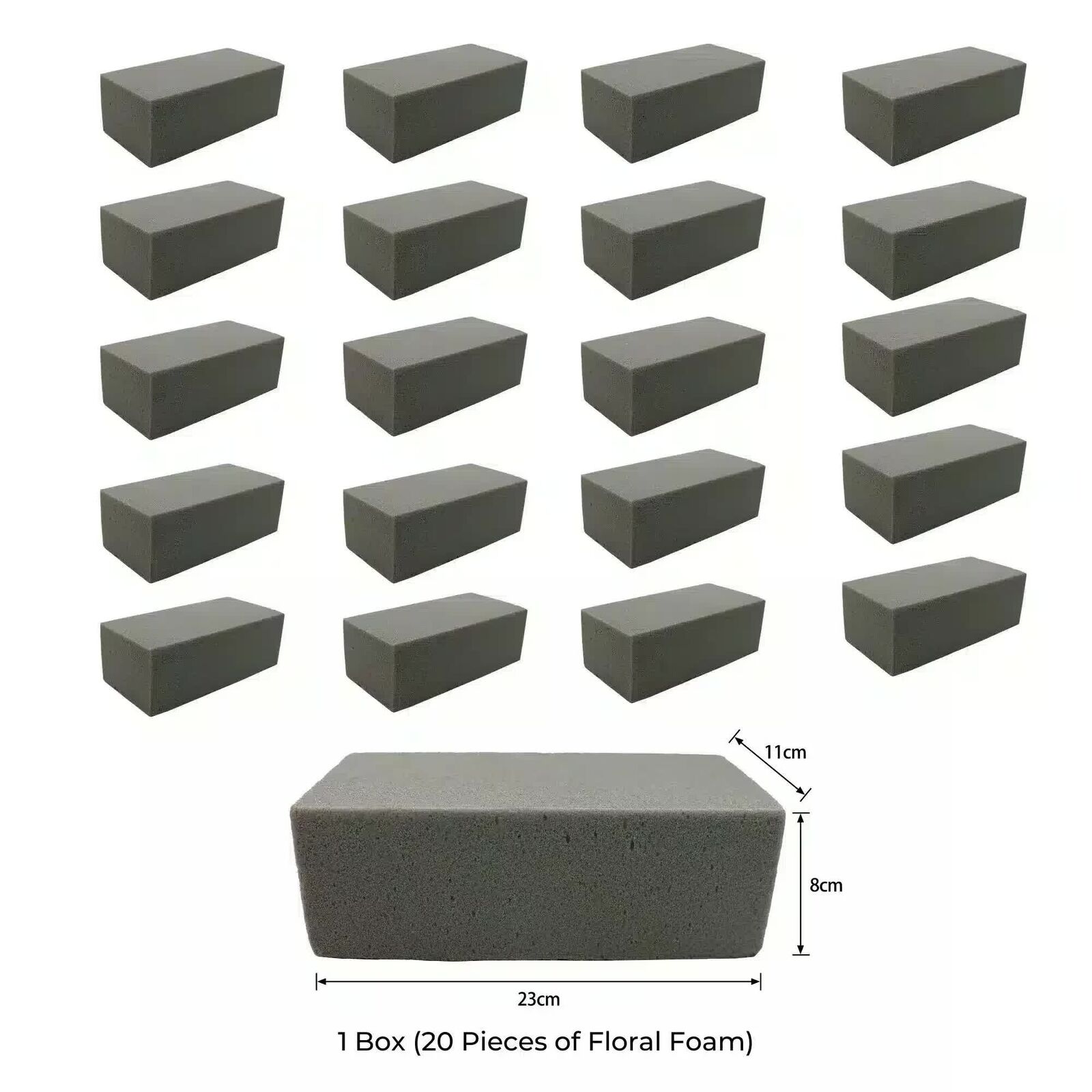 Transform your floral arrangements with our high-quality Dry Floral Foam Bricks. Perfectly sized at 23cm x 11cm x 8cm, these durable foam blocks are ideal for creating stunning artificial plant displays and arrangements that last. Whether youre crafting elegant centerpieces for weddings or designing eye-catching home dcor, our floral foam provides a stable base to secure stems and foliage effortlessly.