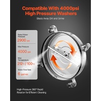 With a rated pressure of 2900 PSI and a max pressure of 4000 PSI, this pressure washer accessories features dual rotating nozzles that make light work of dirt and grime. Tough stains don’t stand a chance.