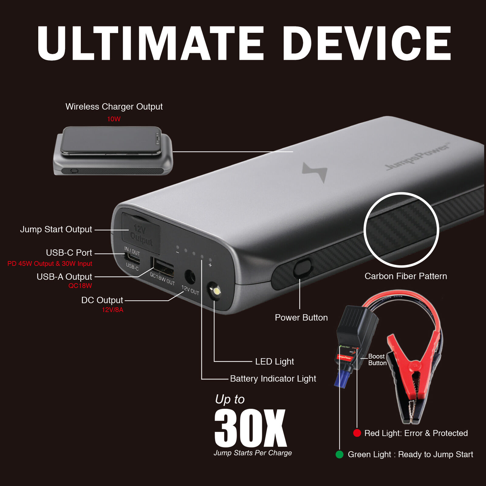 JumpsPower GT 2000A Jump Starter Powerbank 37000mWh 12V Phone Car Battery Charger GTS