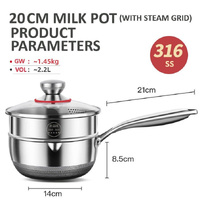 3. FAST EVEN HEATING - The entire milk pan body is all seven-ply bonded construction ensures optimal heat distribution for fast even heating and energy saving, suitable for all hobs: gas, electric, induction, ceramic stoves.