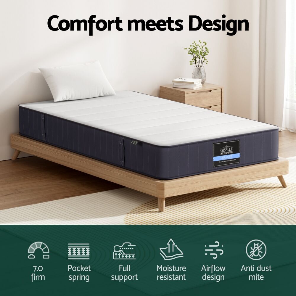 Experience premium comfort with Giselle Bedding Cloud Series mattress. The 20cm thickness combines breathable knitted fabric with Tight Top design for surface adaptability. 7.0 firmness rating and independent pocket springs deliver targeted body support. Enhanced 6-turn coils work with high-density foam to maintain structural integrity, while reinforced edges prevent roll-off. Suitable for most bed frames