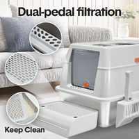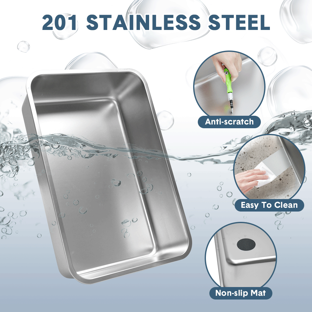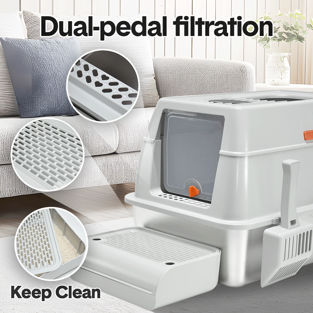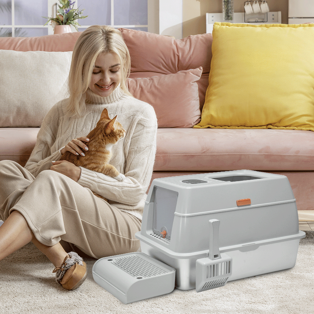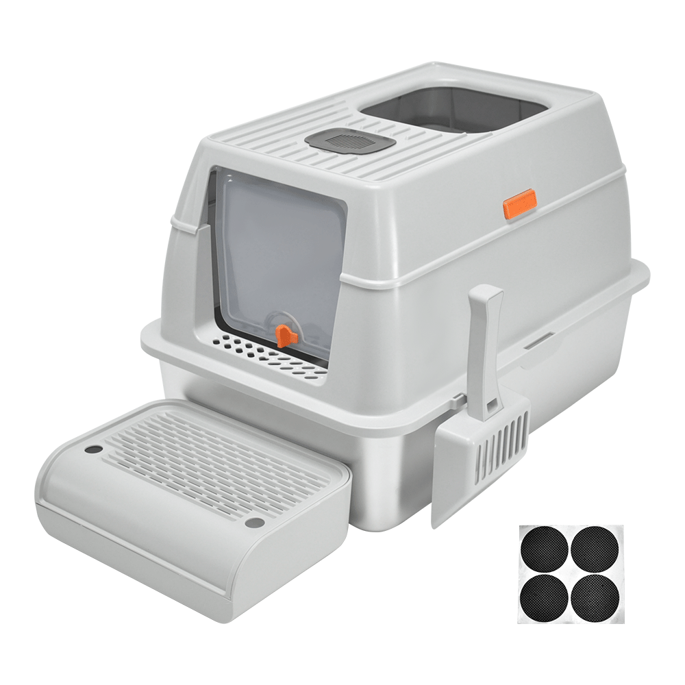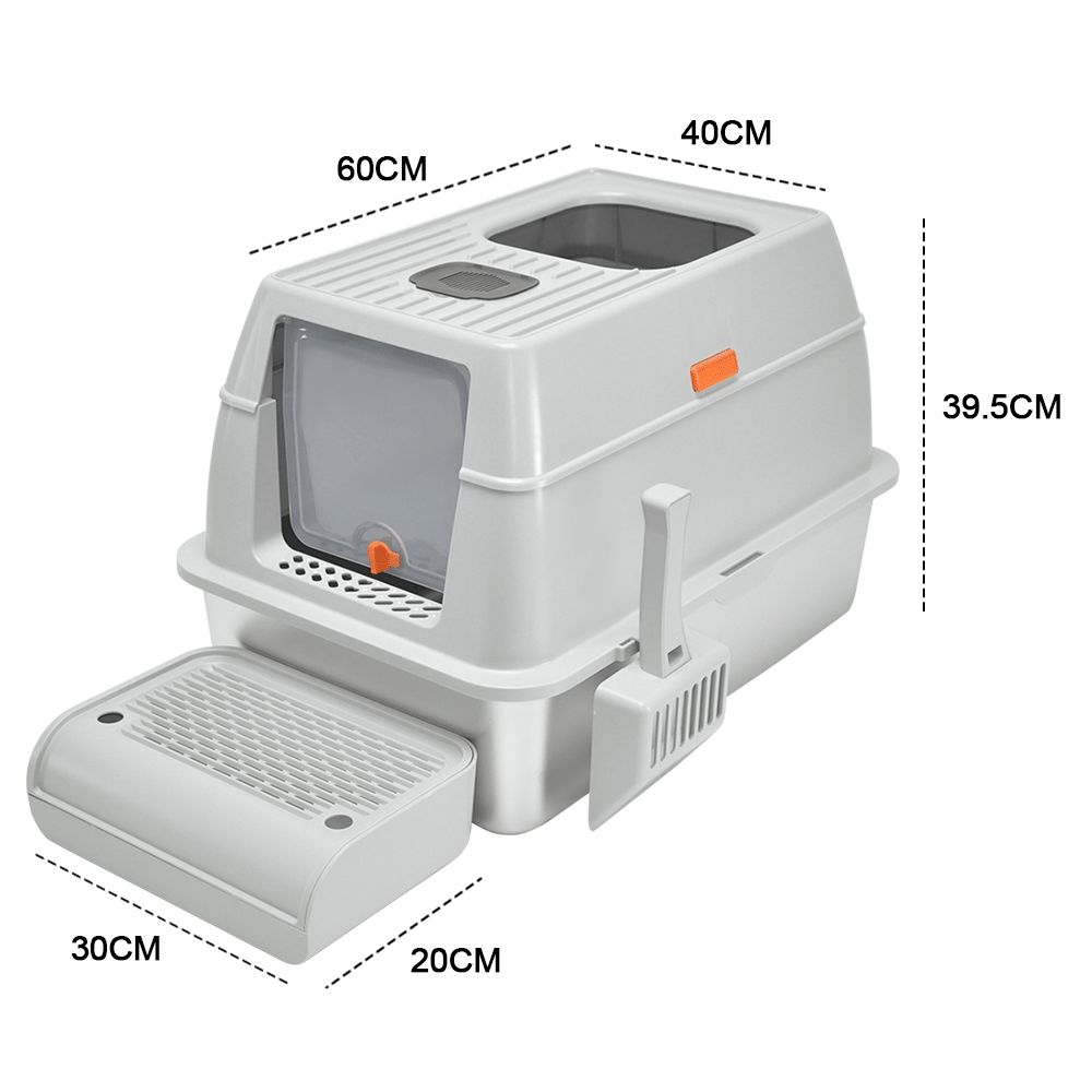 Made from high-quality 201 stainless steel, the litter tray is scratch-resistant, and easy to clean. The detachable structure, high sides, and ventilation slots help to control odors and prevent leaks. Comes with a scoop and a front foot ramp for easy access, this litter box is user friendly for your cat's needs.