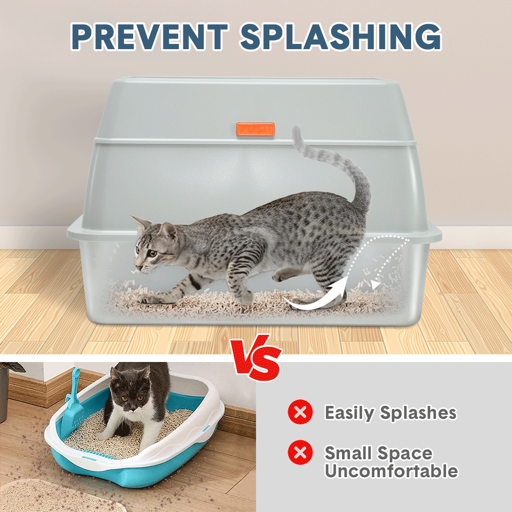 Create a clean and privacy space for your cat with this thoughtfully enclosed litter box. It offers a spacious area for pooping and urinating while keeping odors contained. The top and front entry options make it adaptable for cats with different preferences, reducing litter tracking and making clean-up easier.