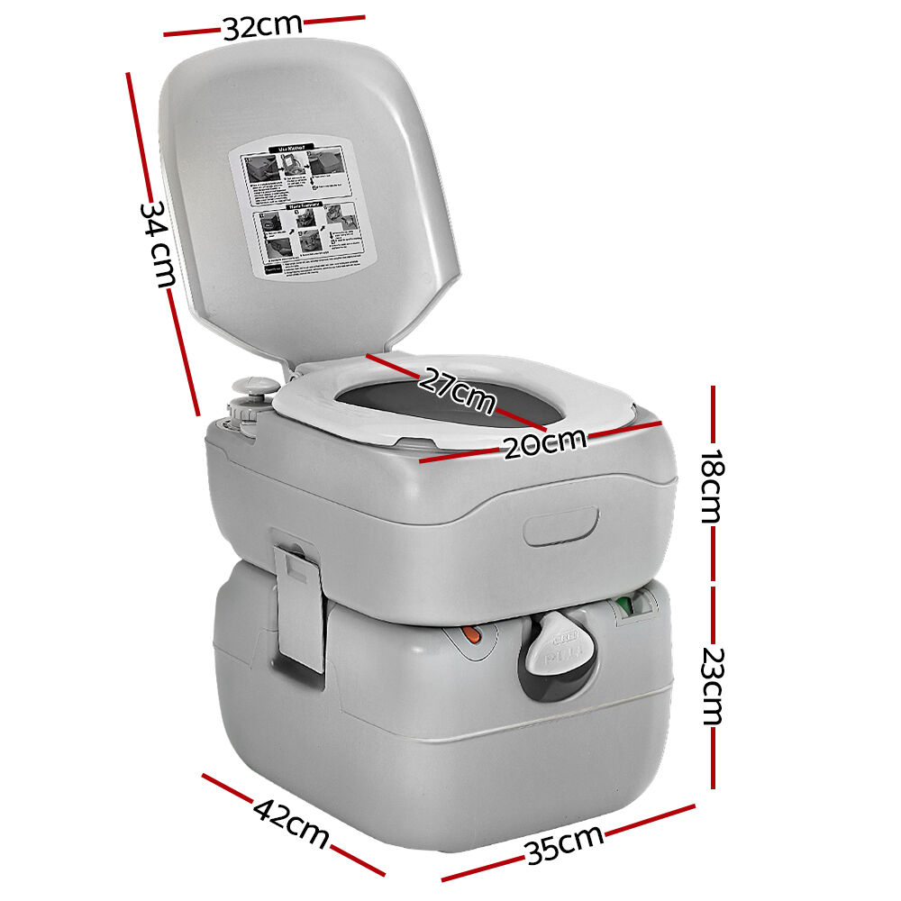 $155.09For instant relief while camping, nothing beats having this Weisshon 22L Portable Camping Toilet around. It features a high quality construction and generous water reserves. In fact, 14 litres of freshwater capacity that is good for up to 80 flushes. And unlike others, its two-way flush is ultra strong and ensures total and complete flushing for a thoroughly cleaned toilet. The double-sealed drain valve also protects against leakages and odours. The high-density construction makes it strong and durable while both the water and waste holding tanks are of one-piece construction with heavy-duty and corrosion resistant side latches locking the tanks together. The portable toilet has an attractive matte finish and is scratch-resistant. Not least, the 22-litre holding tank is detachable for easy disposal of contents and cleaning. With no power or water source required, our portable toilet is just perfect for your camping, picnic, marine or road trip.