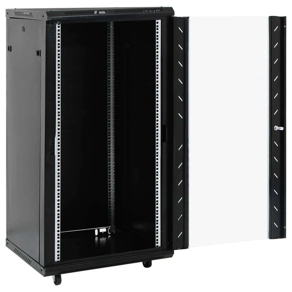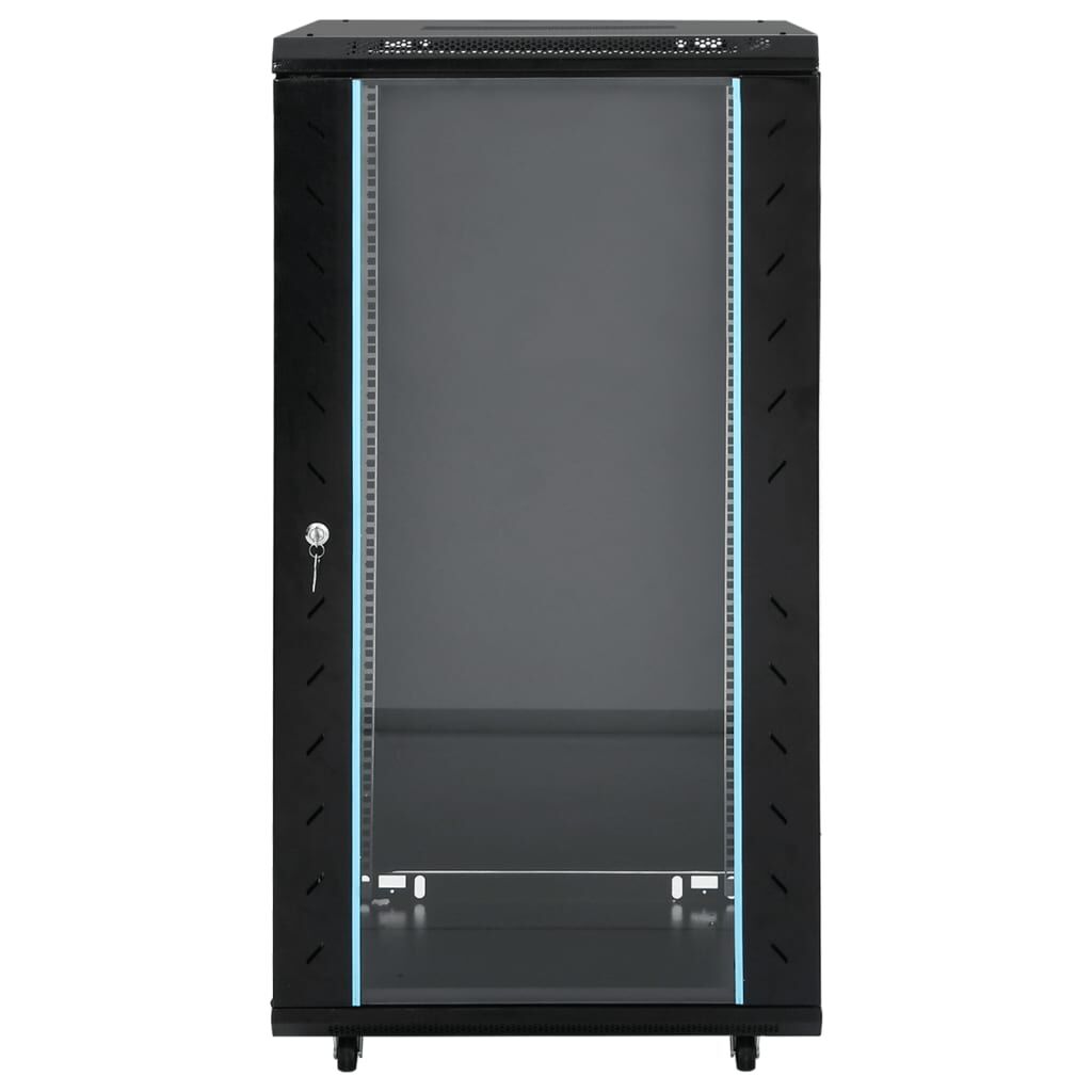 This 22U network cabinet is designed to be a great helper for keeping your network accessories in order. Solid structure: This data cabinet, featuring a solid structure, is made of premium cold-rolled steel, making it strong and durable to use. It is compatible with 19" standard equipment.Easy to maintain: The removable side panels make it easy to maintain network accessories.Lock device: Thanks to the included lock and key, the lockable front door prevents unwanted opening and keeps the items safe.