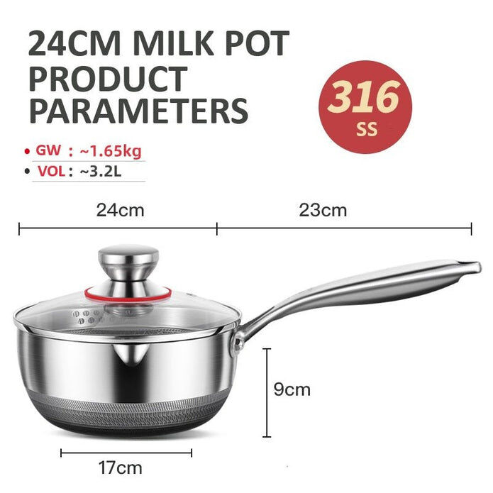3. FAST EVEN HEATING - The entire milk pan body is all seven-ply bonded construction ensures optimal heat distribution for fast even heating and energy saving, suitable for all hobs: gas, electric, induction, ceramic stoves.