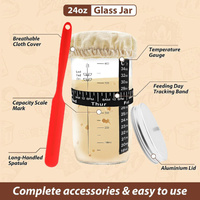 This 24oz fermentation glass jar is tailored for home bakers aiming for consistent sourdough results.Crafted from durable borosilicate glass, it comes equipped with a temperature band (18–34°C) for optimal fermentation monitoring, a feeding tracker band for precise rise checks, and a breathable cloth cover to fend off contamination.A silicone spatula simplifies mixing and scraping, making it a complete kit for bread fermentation.
