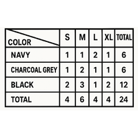 Important Note: Each box includes a mix of Black, Navy, and Charcoal Grey track pants in sizes S, M, L, XL, and 2XL. While we always do our best to ensure a balanced variety, the exact size and colour breakdown may vary depending on availability at the time of dispatch.