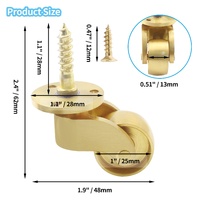 25mm Castor Brass Caster Wheel Swivel Vintage Chairs Cabinet Bed Furniture Wheels Brass