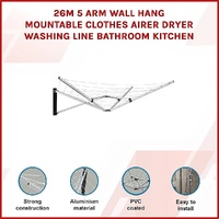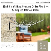 $76.13Whether you prefer to dry your clothes inside in the bathroom or kitchen or outdoors in the garden, this 26-metre five-arm wall mountable clothes dryer by Randy Travis Machinery is the perfect solution. It's easy to install on an outdoor brick or timber wall or a stud for an interior wall.