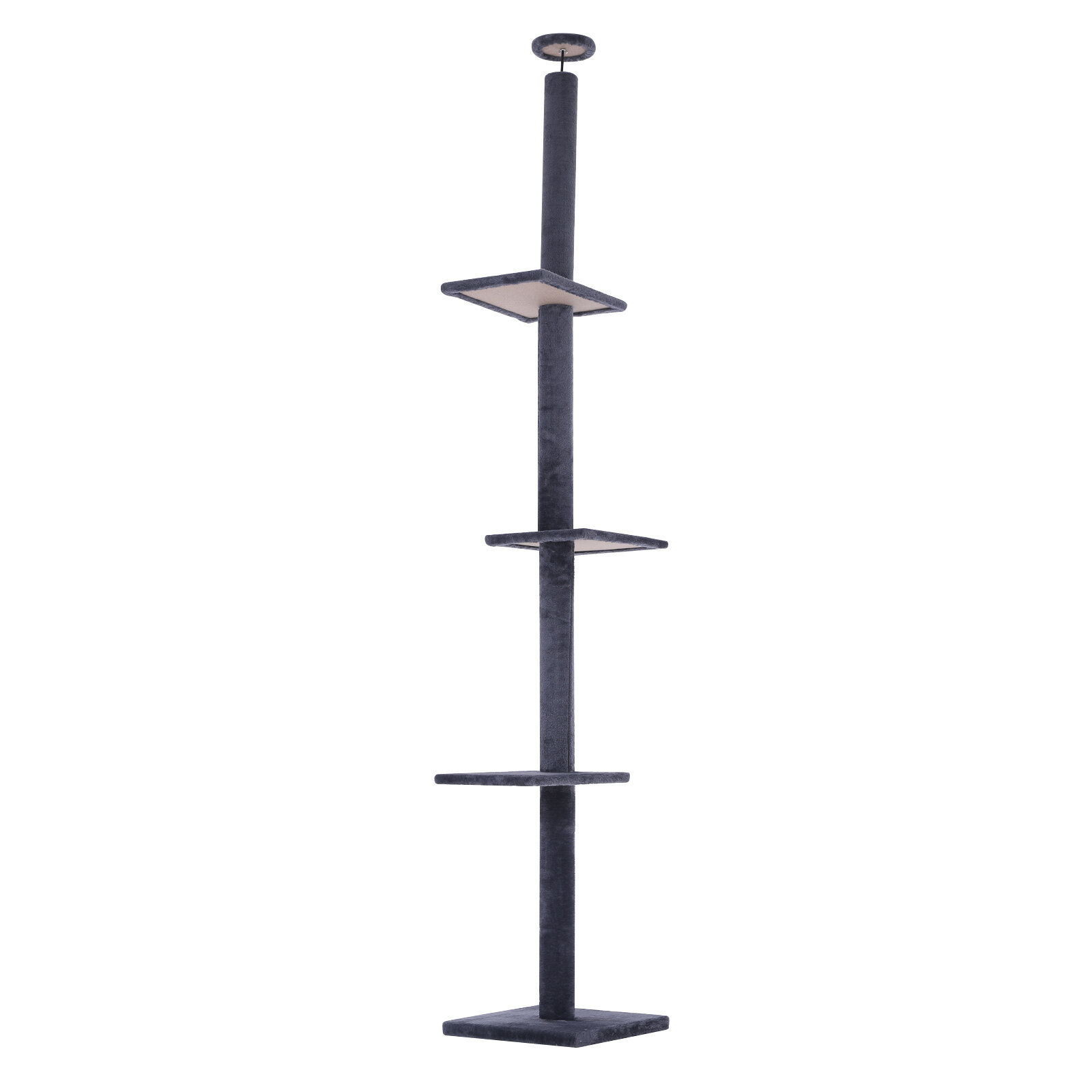 Meow there! Are you tired of cluttering your home with cat toys and furniture Are you on the hunt for the purrfect all-in-one playground for your furry friends Well, look no further than Paw Mat cat tree!This cat tower extends from floor-to-ceiling and features platforms at varying heights. Its sturdy construction ensures that your energetic cats can climb and jump around safely, promoting their physical and mental health. Additionally, each platform offers a cozy spot for your feline friends to relax and survey their surroundings.Unlike other fixed-height cat trees, it has an adjustable telescoping rod to fit most of your ceilings (ceiling height from 246cm to 278cm) and the top part is wrapped with a plush covering to protect the wall or ceiling from scratches or damage. No need to worry about finding a cat tree that matches the exact height of your room.Moreover, it is both functional and stylish, fitting seamlessly into any home decor. It's also perfect for cat cafes, creating a stimulating environment for your feline customers and enhancing the ambiance of the space.Don't let your cat settle for anything less than the best. Invest in our cat tree and give them the ultimate feline paradise they deserve!