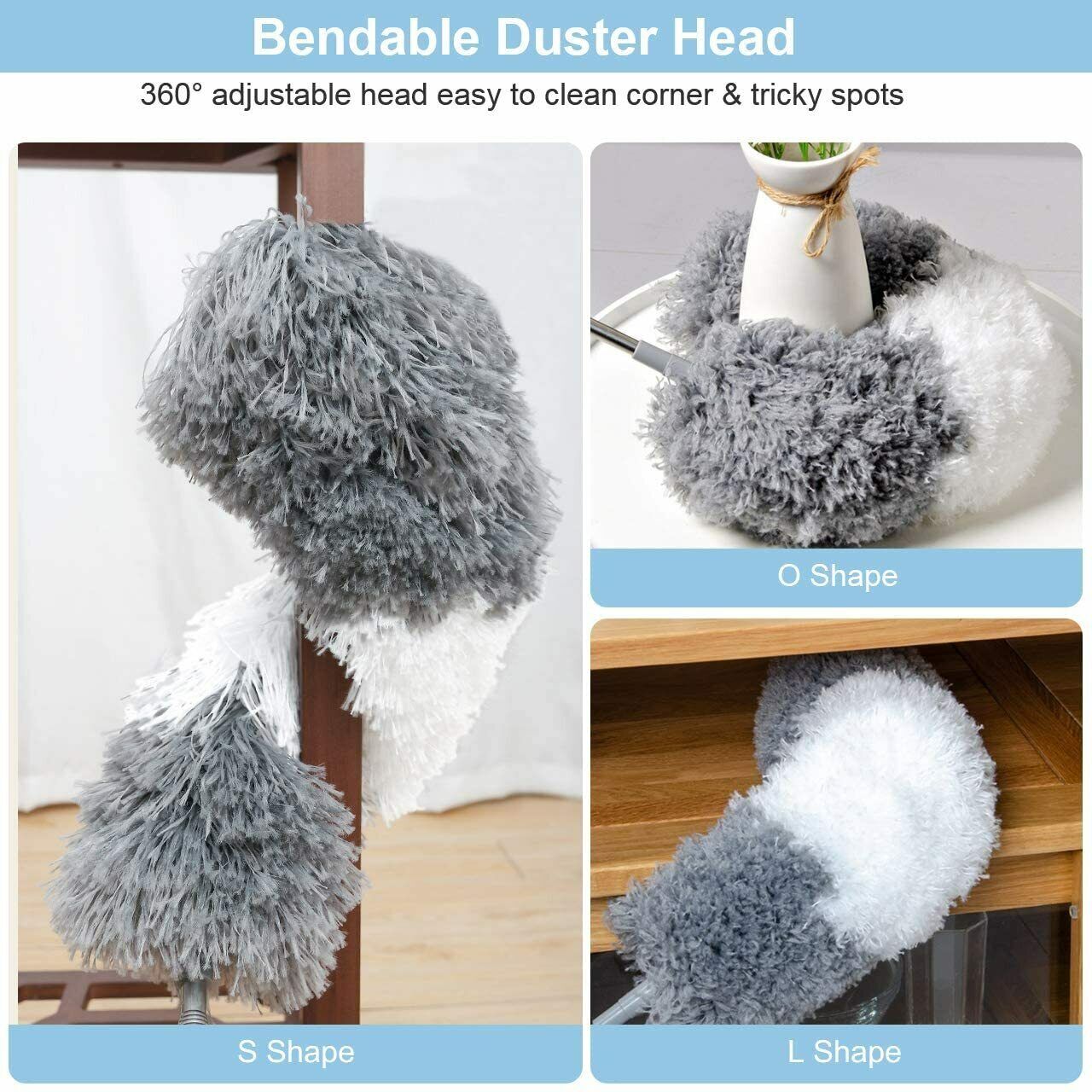 [Bendable head] The bendable microfiber duster head is more convenient than ordinary dusters. It can be adjusted to any angle, that makes it easier to clean the dust hiding in high corner.