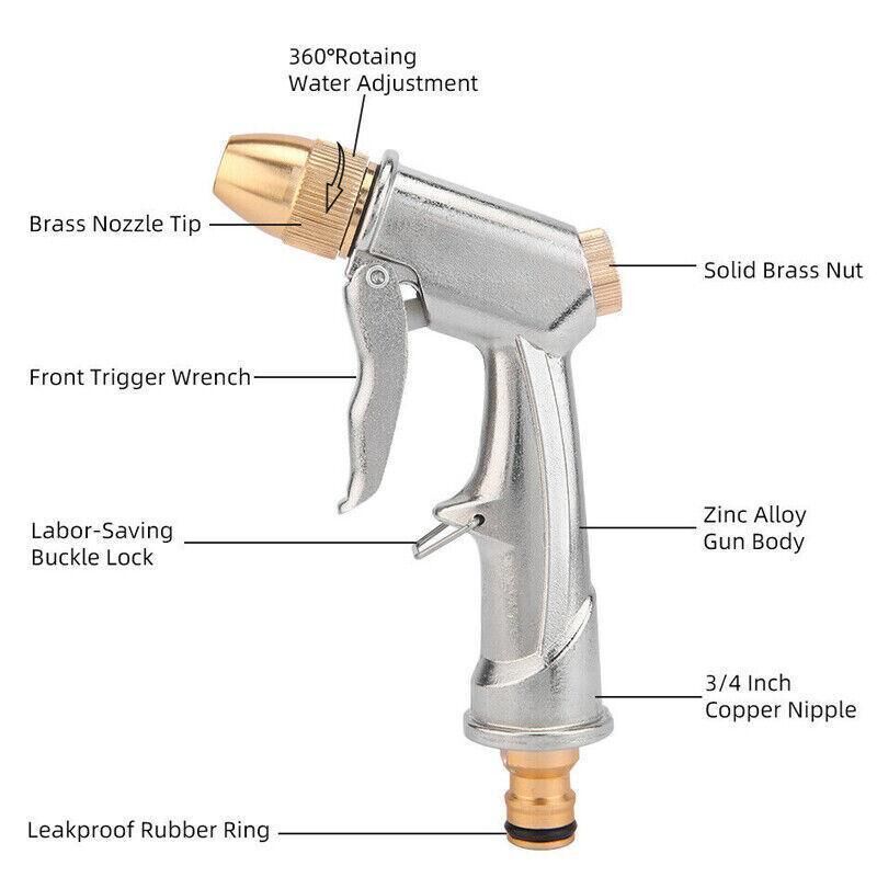 5. 100% metal: brass nozzle, stainless steel trigger, painted cast iron handle, making it unbreakable; much more durable than plastic nozzles.