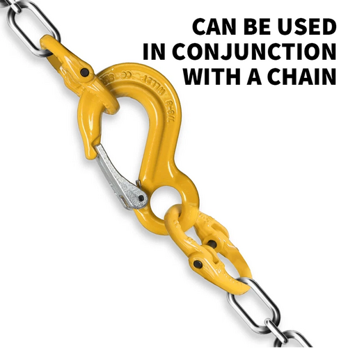 Reliable Strength : The eye sling hook with latch can lift loads of up to 1.12 tonnes of whatever you want. Hook it up with chains then get lifted. Rated to a breaking force of 4.48 tonnes.